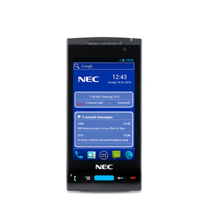 Dört parmak çoklu dokunmatik özelliği ve 7 inchlik ful dokunmatik renkli ekranı ile herhangi bir NEC sistem telefonu işlevselliği.